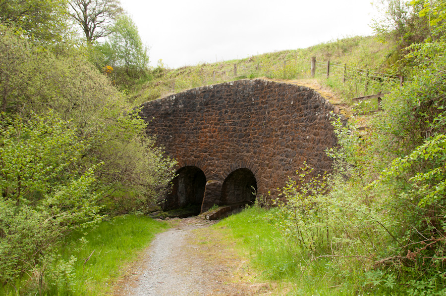 Two parallel tunnels underpass the canal, one for the burn, the other one for pedestrian way to Mount Alexander Farm and for high-tide. The rubble is coursed and spandrels are sloped to the dam.