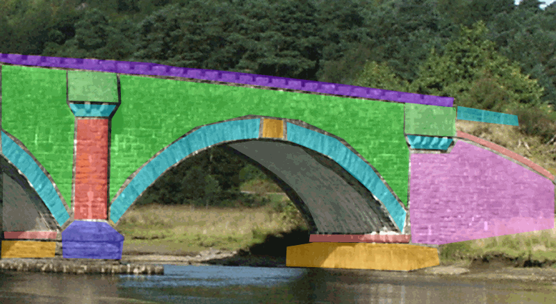 Important feature of the Parliamentary-Bridges, is arising of the transition of the slight battered wingwalls (inward slope) to the vertical spandrel and voissoirs. Therefore is the ledge upside decreasing.spandrel